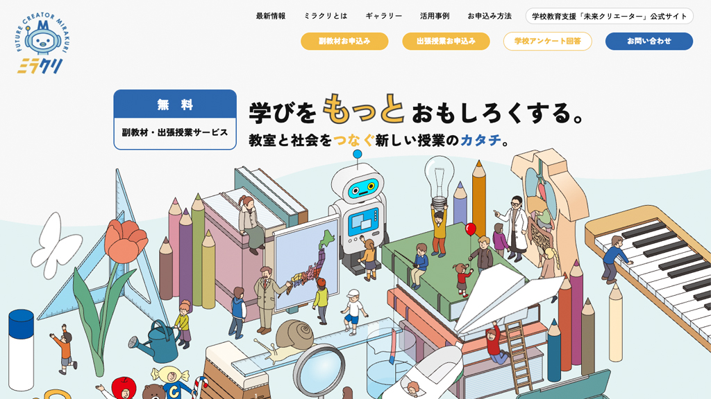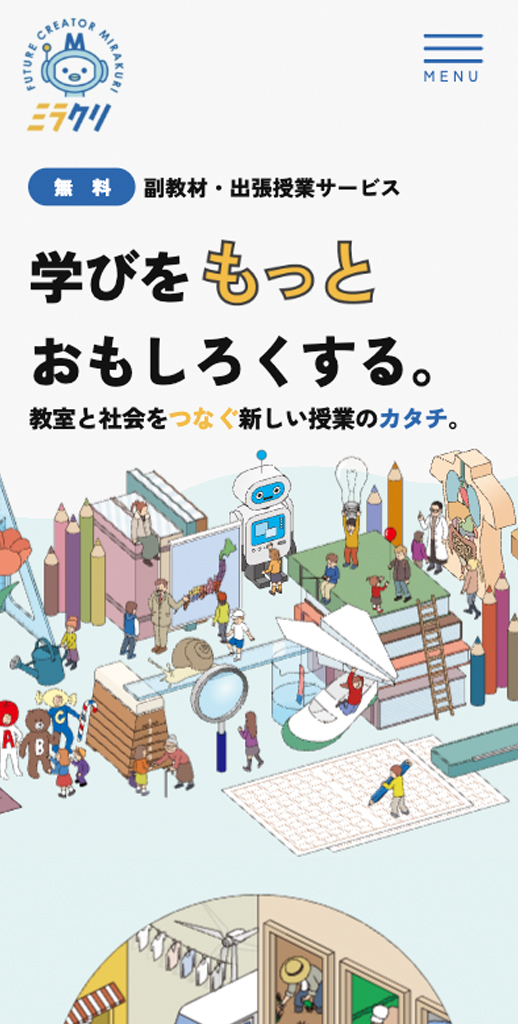 学びと身近な生活とをつなげる興味発見型授業を提供しているサービス「未来クリエーター(ミラクリ)」。ミラクリを通じて、生徒たちの学びをもっとおもしろくできるというワクワク感をアニメーションを使い表現しました。