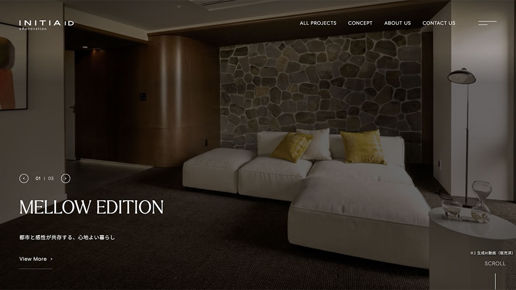 「暮らしに、心に、確信を。」をコンセプトに手掛けるINITIA & RenovationのリノベーションマンションシリーズINITIA IDのブランドサイトのデザインを担当しました。あこがれの海外ホテルで過ごすような高揚感と洗練を住まいに取り入れ、非日常を日常に変えるリノベーションマンションシリーズとして、唯一無二の住まいを提案します。