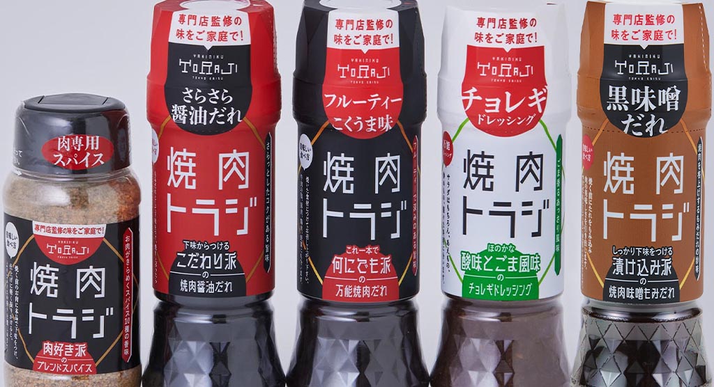 株式会社トラジは、食文化を通じて幸せを提供する企業です。“焼肉正統”を創造し、食で人々を幸せにすることを使命とし、本物の肉、上質な味を提供しています。本物の肉、上質な味を提供しています。トラジ様のトータルブランディングの一貫で、4種類のパッケージデザインを作成。コンセプトは「味覚と視覚で楽しむ焼肉のたれ」。シズル感のあるコピーで訴求し、トラジ様のイメージを守りつつ先進性のあるデザインで購買意欲を促すようにいたしました。